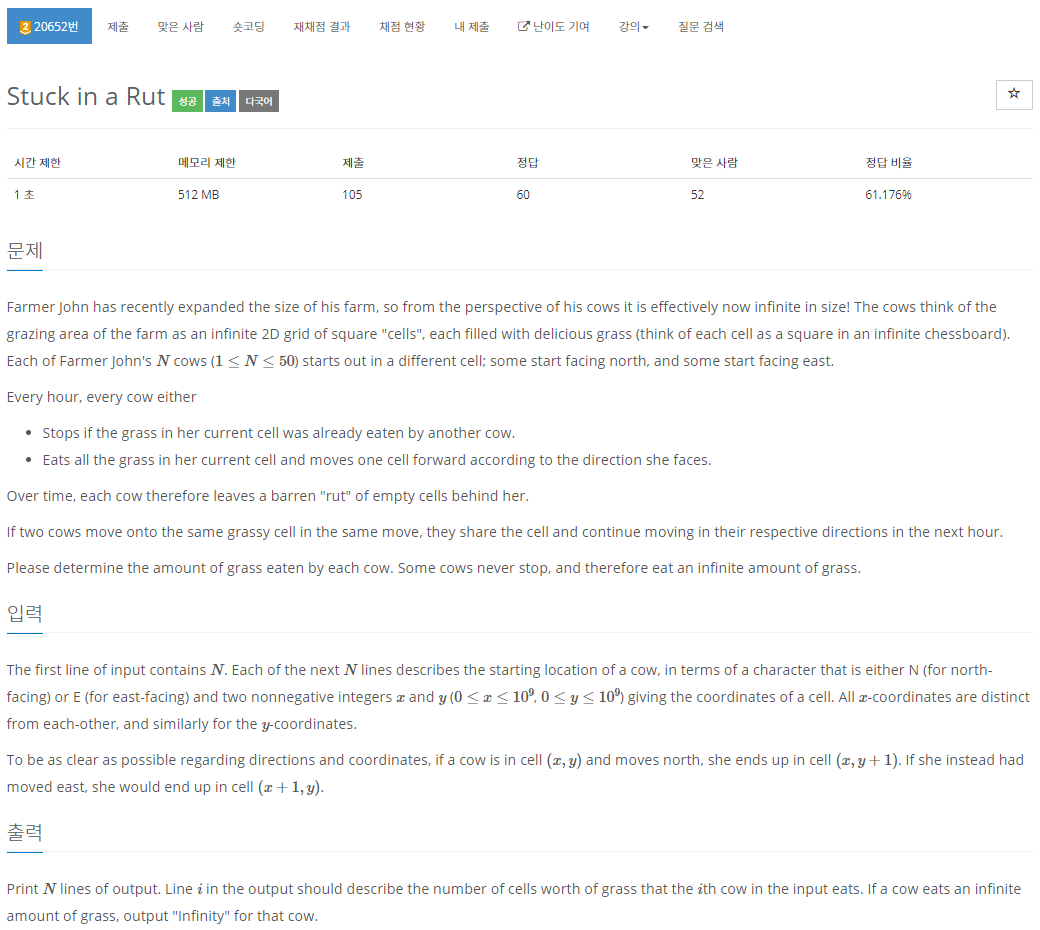 else return Integer.compare(this.x, o.x); // 북향 소들은 x기준 오름차순